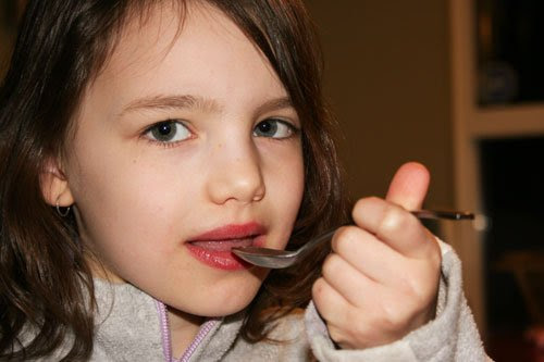- Follow whatever you choose to take with a swig of water and something with a stronger flavor. We like a piece of cheese, raisins, and have even been known to use chocolate chips (healthier ones, of course!) as bribery.